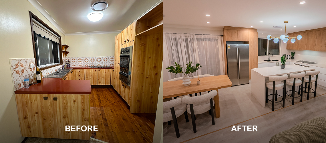 This comprehensive residential renovation transformed a three-bedroom home into a spacious four-bedroom family residence. The project involved a complete kitchen strip-out and renovation, full bathroom renovations including an ensuite and WC, laundry upgrade, lounge area transformation, and custom interior features.