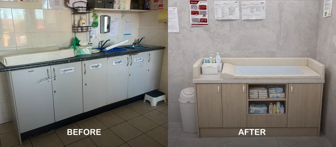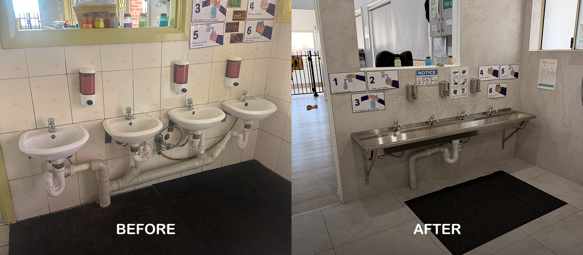 This commercial project for a childcare center in Quakers Hill involved a complete bathroom strip-out and renovation. The scope included demolition, new finishes, fixtures and fittings, delivered with a focus on durability, compliance and professional presentation. The finished space provides a clean, functional bathroom suited to commercial use.