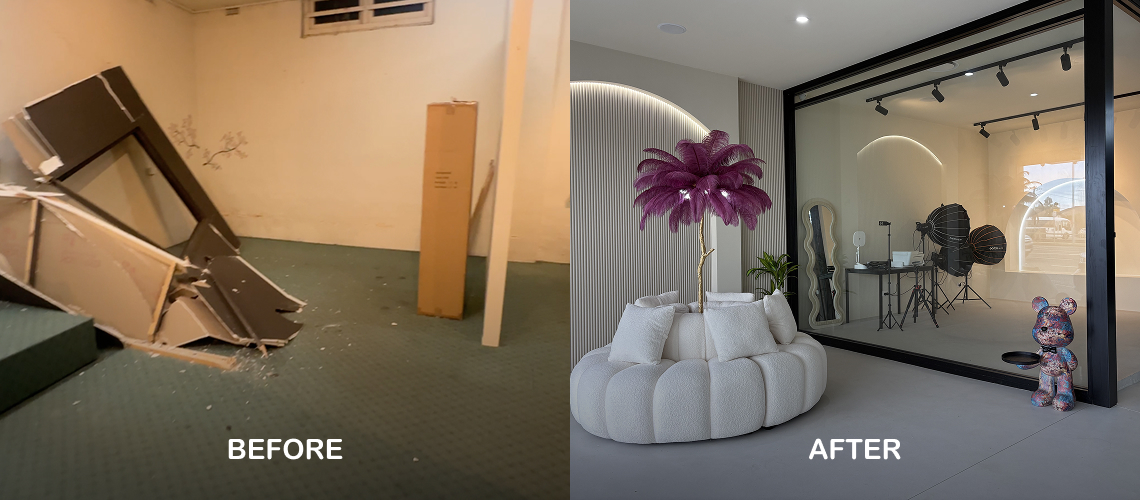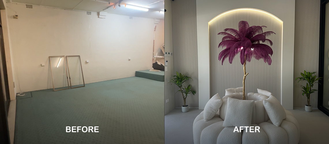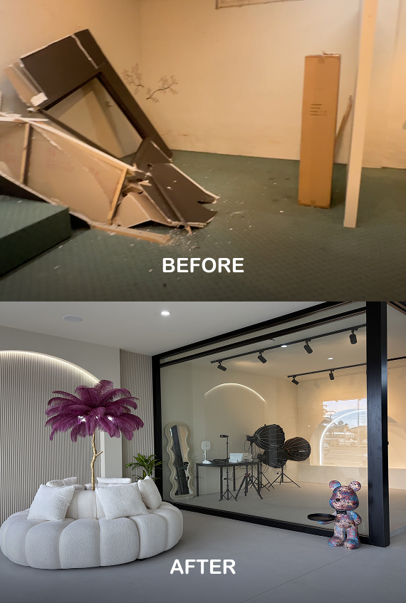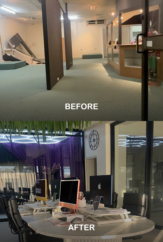 This high-end commercial renovation in South Hurstville involved extensive structural and interior works to create a modern, functional space. The project included structural demolition, new flooring, glass partitioning, bathroom and kitchen installations, and the construction of dedicated content studio areas.